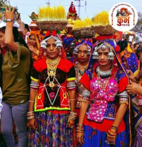 या शोभायात्रेवर हेलिकॉप्टरद्वारे कुंभस्थळाजवळ आणि शोभायात्रा मार्गावर पुष्पवृष्टी करण्यात आली. सकाळ पासूनच कुंभस्थळी समाज बांधवांनी गर्दी करण्यास सुरुवात केली होती. महिलांनी पारंपारिक वेशभूषेत “लेंगी“ नृत्य केले. यात लहान मुली पासून ज्येष्ठ महिलेपर्यंतचा समावेश होता. या सोबतच महिलांनी पारंपारिक पोषाखात व पारंपारिक “लोक गीते“ गात तिज आणले. कुंभ स्थळी महिला गटा गटाने पारंपारिक लोकगीते गात पारंपारिक नृत्य करत होत्या.