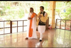 जालना:केंद्रीय रेल्वेमंत्री ना.रावसाहेब पाटील दानवे हे कर्नाटक दौऱ्यावर असतांना बेंगलोर येथील आर्ट ऑफ लिव्हिंगच्या इंटरनॅशनल आश्रमास सदिच्छा भेट देऊन आर्ट ऑफ लिव्हिंगचे संस्थापक तथा आध्यात्मिक गुरु श्री श्री रविशंकर यांचे आशीर्वाद घेतले आहेत.आर्ट ऑफ लिव्हिंग आश्रमाच्या वतीने केंद्रीय रेल्वेमंत्री ना.रावसाहेब पाटील दानवे यांचे शाल,श्रीफळ व पुष्पगुच्छ देऊन सत्कार करण्यात आला. यावेळी श्री श्री रविशंकर यांनी ना.दानवेंना काही ग्रंथही भेट म्हणून दिली आहेत.