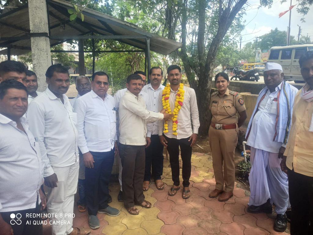 श्रीक्षेत्र राजूर:येथे पोलीस दलात निवड झालेल्या विद्यार्थ्यांचा सत्कार करण्यात आला असून त्यांना पुढील वाटचालीस शुभेच्छा देण्यात आल्या.यामध्येअमोल जगताप यांची अकोला ग्रामीण पोलीस पदी तर प्रथमेश दाभाडे यांची जिल्हा पोलीस नांदेड येथे नियुक्ती झाली आहे. त्याबद्दल त्यांचा सत्कार आयोजित करण्यात आला होता. वरील दोनही विद्यार्थी सामान्य शेतकरी कुटुंबातील असून त्यांनी कठोर परिश्रमातुन हे यश संपादन केले आहे. हसनाबद पोलीस ठाण्याच्या सहायक पोलिस निरीक्षक वैशाली पवार यांच्या हस्ते पोलीस दलात निवड झालेल्या विद्यार्थ्यांचा सत्कार करण्यात आला.