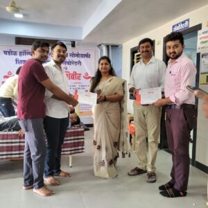 श्रीक्षेत्र राजूर: येथील पडोळ हॉस्पिटल,शिवकृपा लॅबोरेटरी आणि स्वामी समर्थ रक्तपेढी जालना यांच्या संयुक्त विद्यमाने आयोजित रक्तदान शिबीरास उत्स्फूर्त प्रतिसाद देत २० युवकांनी रक्तदान केले.यावेळी पडोळ हॉस्पिटल आणि स्वामी समर्थ रक्तपेढी जालना यांच्या वतीने रक्तदात्यांस प्रमाणपत्र देऊन गौरविण्यात आले.