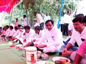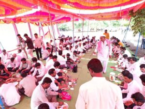 श्रीक्षेत्र राजूर : पंतप्रधान नरेंद्र मोदी यांच्या नेतृत्वाखाली केंद्र सरकारने नऊ वर्षे पूर्ण केले.त्यानिमित्ताने भाजपने महा-जनसंपर्क अभियानाला सुरवात केली आहे.मोदी सरकारची उपलब्धी सर्वसामान्यापर्यंत पोहचविण्याची जबाबदारी केंद्रीय मंत्र्यांवर सोपवली आहे.त्याचाच एक भाग म्हणून भोकरदन तालुक्यातील नळनी येथे केंद्रीय रेल्वेमंत्री रावसाहेब दानवे यांच्या मार्गदर्शनानुसार महा-जनसंपर्क अभियान बैठक संपन्न झाली.यावेळी ना.दानवेंनी कार्यकर्त्यांसह डबा पार्टीत सहभाग घेऊन स्नेहभोजनाचा आनंद लुटला.
