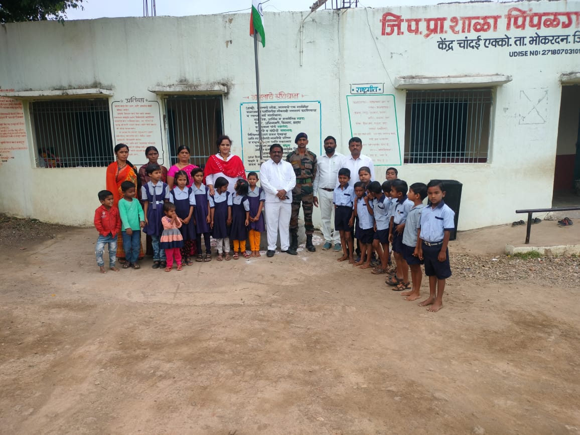 यावेळी मा.पं.समिती सदस्य सोमीनाथ हराळ, सरपंच शारदाताई मनोहर,ग्रामसेविका वाहुळे मॅडम,मुख्याध्यापक रामेश्वर चेके,बळीराम बरकले,ज्ञानेश्वर हराळ, कृष्णा हराळ, बालू वनारसे,आत्माराम वनारसे,नाना दानवे,परमेश्वर वनारसे व गावकरी,विद्यार्थी मोठ्या संख्येने उपस्थित होते .