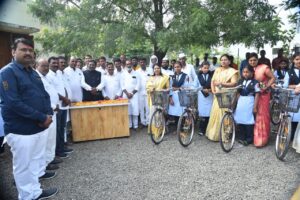 श्रीक्षेत्र राजूर:मुलींना शिक्षणाच्या मुख्य प्रवाहात आणण्यासाठी शासनाच्या मानव विकास कार्यक्रमांतर्गत इयत्ता आठवी ते बारावीपर्यंत शिक्षण घेणाऱ्या विद्यार्थिनींना मोफत सायकल वाटप केले जाते.या माध्यमातून शासन स्तरावर जागृती केली जात आहे. यामध्ये शैक्षणिक संस्थाही पुढाकार घेत आहेत. त्याचाच एक भाग म्हणून राजूर येथील मोरेश्वर माध्यमिक व उच्च माध्यमिक विद्यालयात भारतीय स्वातंत्र्य दिनानिमित्त मोरेश्वर शिक्षण प्रसारक मंडळाच्या अध्यक्षा निर्मलाताई दानवे यांच्या हस्ते शालेय विद्यार्थिनींना ३८ सायकलीचे वाटप करण्यात आले.