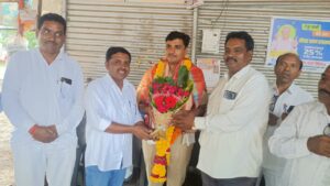 श्रीक्षेत्र राजूर:भोकरदन तालुक्यातील हसनाबाद पोलिस ठाण्यात नव्याने रुजू झालेले सहायक पोलिस निरीक्षक शिवाजी नागवे यांचा राजूर व्यापारी महासंघाच्या वतीने शाल,श्रीफळ व पुष्पगुच्छ देऊन सत्कार करण्यात आला.