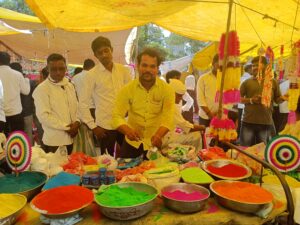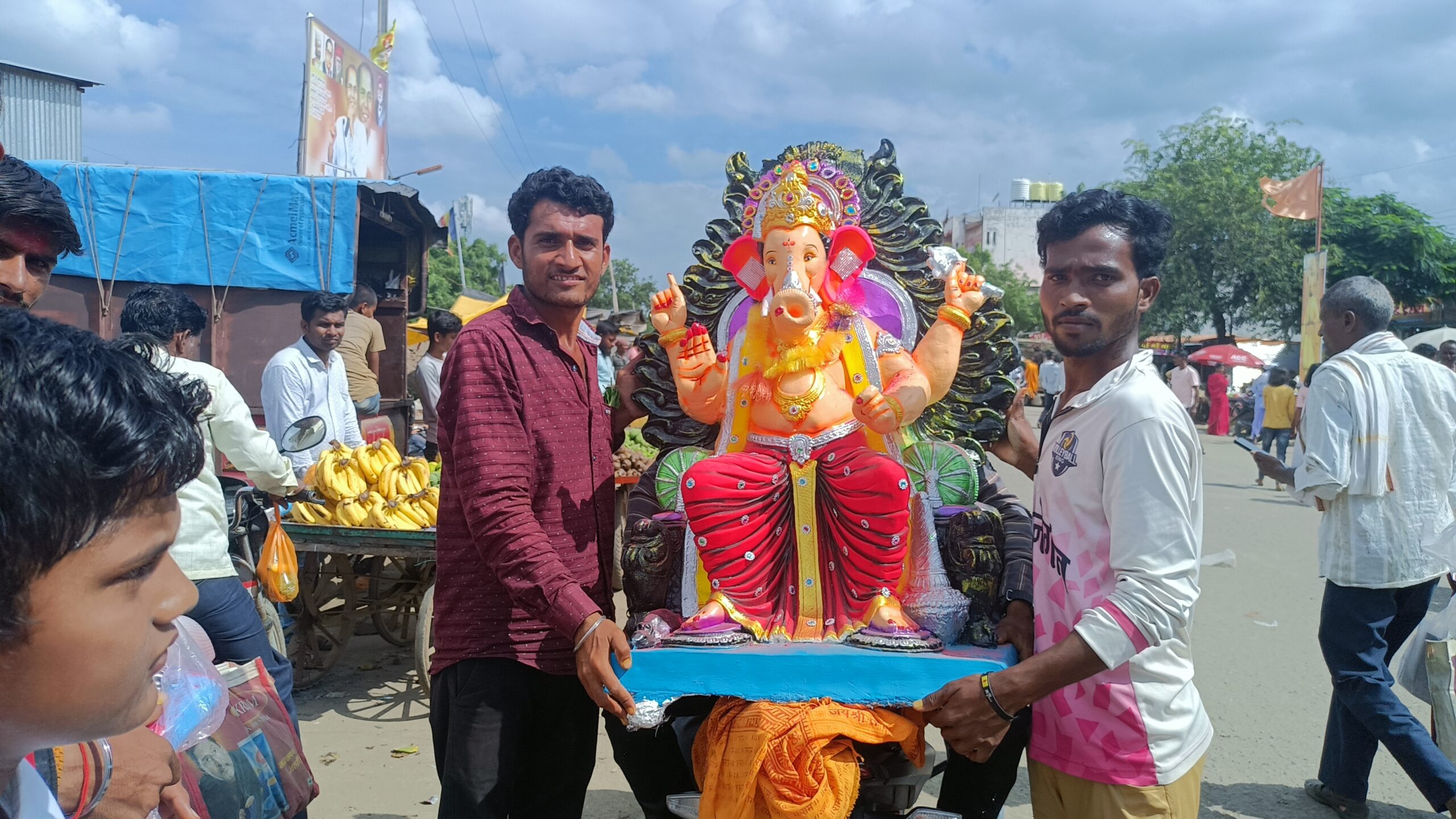 गणरायाच्या विधिवत पूजेसाठी फळे,फुले,हार,श्रीफळ, कपूर,धूप,कापसाचे वस्त्र,जानवे,गुलाल अगरबत्ती,दुर्वा, आघाडा,शमीपत्र,बेल,डाळिंब,सीताफळ,मक्का,चिकू,केळी, सफरचंद आदी साहित्य भक्तांकडून खरेदी करण्यात आले.