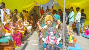 घरगुती तसेच मंडळाकडून गणेशाचीमूर्ती खरेदीसाठी भाविकांमध्ये उत्सुकता होती.बाजारपेठत चैतन्य निर्माण झाले होते. गणेश भक्तांनी आपल्या लाडक्या बाप्पाचे ढोल ताशाच्या गजरात वाजत गाजत स्वागत केले.यावेळी गणपती बाप्पा मोरया, मंगलमूर्ती मोरयाच्या गजराने परिसर दुमदुमला होता.