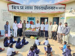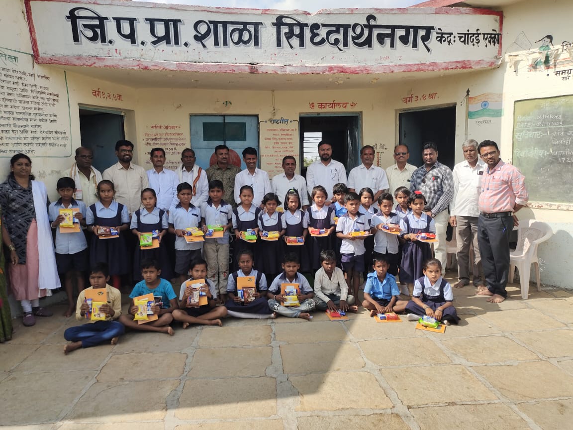 श्रीक्षेत्र राजुर: येथून जवळ असलेल्या चनेगाव येथील विशाल घुगे व राजूर येथील देशोन्नतीचे प्रतिनिधी दीपक घुगे यांनी अनाठायी खर्चाला फाटा देत समाजभिमुख उपक्रमातुन आपले वडील कै. संजय नारायण घुगे यांच्या 15 व्या समूर्तीप्रित्यर्थ चांदई एक्को केंद्रातील सिद्धार्थनगर जिल्हा परिषद शाळेतील विद्यार्थ्यांना शैक्षणिक साहित्य व मिठाईचे वाटप करण्यात आले.