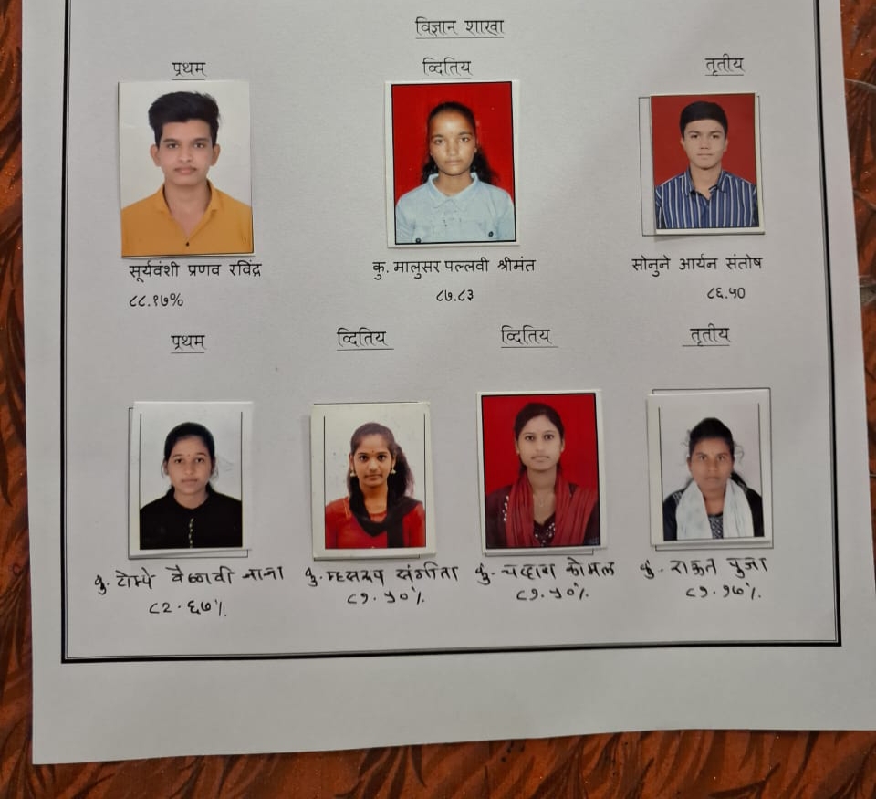 श्रीक्षेत्र राजूर:नुकताच महाराष्ट्र राज्य शिक्षण मंडळाचा इयत्ता बारावीचा निकाल जाहीर झाला असून या परीक्षेत भोकरदन तालुक्यातील राजूर येथील मोरेश्वर कनिष्ठ महाविद्यालयचा एकूण निकाल 99.66% लागला असून विज्ञान शाखेच्या विद्यार्थ्यांनी याहीवर्षी 100% निकालाची परंपरा कायम ठेवली आहे.या परीक्षेस महाविद्यालयातून कला व विज्ञान शाखा मिळून एकूण 297 विद्यार्थी परीक्षेस बसले होते त्यापैकी 296 विद्यार्थी विद्यार्थी उत्तीर्ण झाले आहेत.विज्ञान शाखेचा निकाल शंभर टक्के लागला असून कला शाखेचा निकाल 99.34% इतका लागला आहे. विज्ञान शाखेतील गुणवंत विद्यार्थ्यांमध्ये सूर्यवंशी प्रणव रविंद्र 88.17(प्रथम), मालुसरे पल्लवी श्रीमंत 87.83%(द्वितीय), सोनुने आर्यन संतोष 86.50 % (तृतीय) तर कला शाखेमधून टोम्पे वैष्णवी नाना 82.67% (प्रथम), म्हसरूप संगीता उत्तम 81.50 % द्वितीय),चव्हाण कोमल कैलास 81.50 (द्वितीय), राउत पूजा विष्णु 81.17% तृतीय) क्रमांक पटकावला आहे.वरील सर्व यशस्वी विद्यार्थ्यांचे मोरेश्वर शिक्षण संस्थेचे सचिव नामदार रावसाहेब पाटील दानवे, अध्यक्षा श्रीमती निर्मलाताई दानवे, कोषाध्यक्ष आ.संतोष पाटील दानवे, प्रशासकीय अधिकारी, प्राचार्य, प्राध्यापक, शिक्षक व शिक्षकेत्तर कर्मचाऱ्यांनी यशस्वी विद्यार्थ्यांचे अभिनंदन केले.