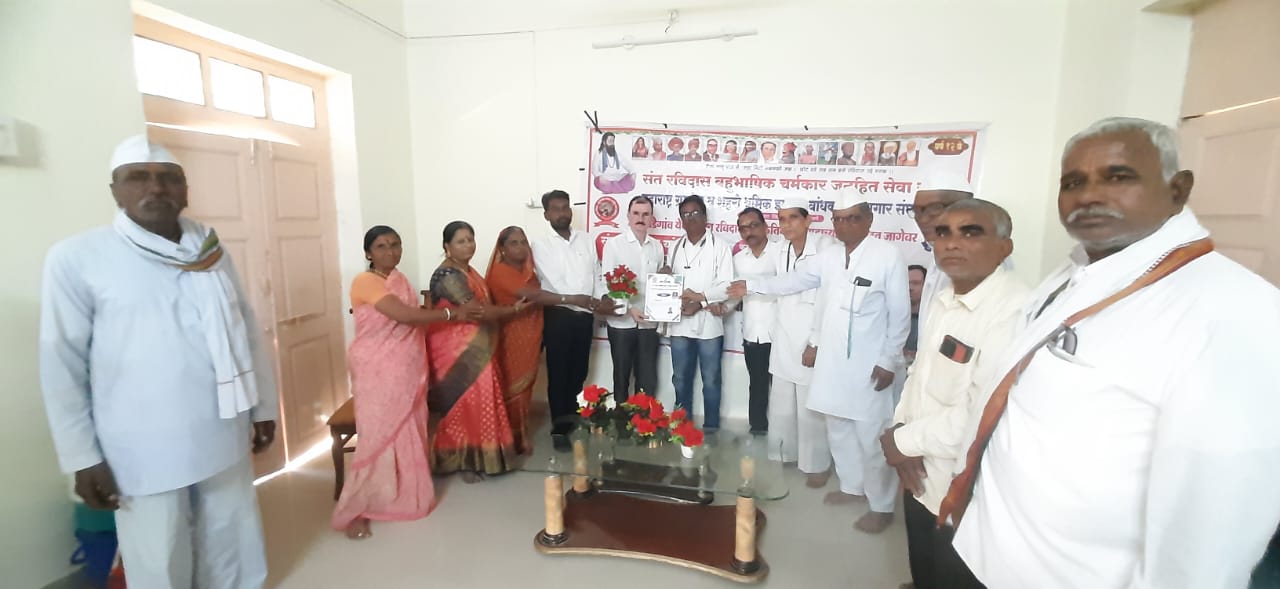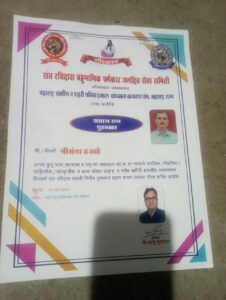 श्रीक्षेत्र राजूर: येथून जवळ असलेल्या थिगळखेडा येथील कवी श्रीमंत ढवळे यांना सामाजिक आणि साहित्य क्षेत्रात उल्लेखनीय कार्य केल्याबद्दल भोकरदन येथे संत रोहिदास महाराज यांच्या जयंती निमित्त समाजरत्न पुरस्काराने गौरविण्यात आले.