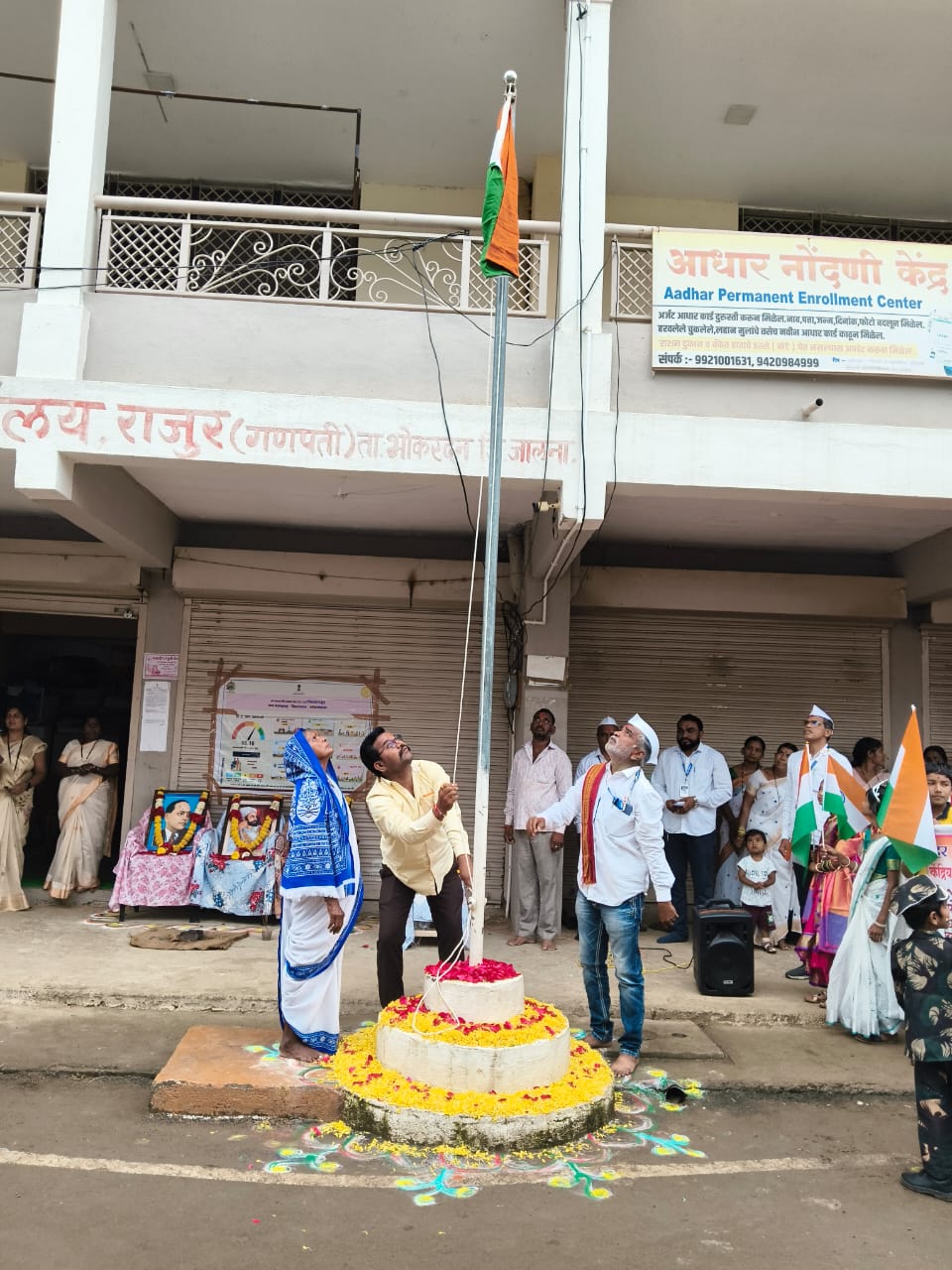 भोकरदन तालुक्यातील राजुरी येथे ग्राम संसद कार्यालयात भारतीय स्वातंत्र्य दिन मोठ्या उत्साहात साजरा करण्यात आला.यावेळी उपसरपंच जिजाबाई मगरे यांच्या हस्ते ध्वजारोहण करण्यात आले.