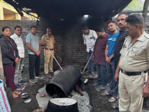 मंठा प्रतिनिधी : मंठा शहरातील बी.के. कॉर्नर व बाजार परिसरात मंठा पोलिसांनी मोठी कारवाई करत दोन वेगवेगळ्या ठिकाणी गावठी हातभट्टी दारू अड्ड्यांवर धाड टाकली. या कारवाईत दोन आरोपींवर गुन्हा दाखल करण्यात आला असून मोठ्या प्रमाणात मुद्देमाल जप्त करण्यात आला आहे.जालना जिल्ह्याचे पोलीस अधीक्षक अजय कुमार बंसल, अप्पर पोलीस अधीक्षक आयुष नोपाणी तसेच उपविभागीय पोलीस अधिकारी रामेश्वर रेंगे यांच्या मार्गदर्शनाखाली पोलीस निरीक्षक पुरुषोत्तम देशमुख यांच्या पथकाकडून कारवाई करण्यात आली.